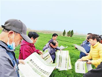 3月15日,市农科院小麦研究团队在殷都区北蒙街道武官村调研苗情、宣传讲解春季麦田管理技术,并为农民分发技术挂图,为粮食增产、农民增收提供有力的科技支撑。(薛志伟 摄)