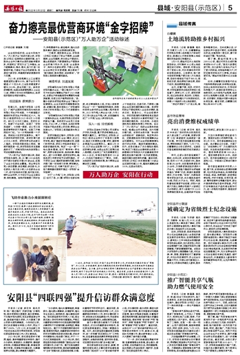 企业活则经济活,企业兴则地方兴。“万人助万企”活动开展以来,安阳县(示范区)坚持把优化营商环境、全力服务企业作为事关全局的战略举措来抓,牢固树立“项目为王”工作理念,全力破解痛点、难点、堵点,奋力打造一流营商环境,为建设产业示范新高地、宜居活力新安东、幸福美好新家园提供有力支撑。